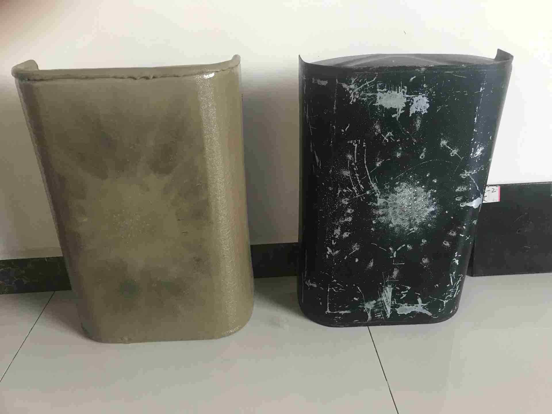 圖中展示了兩只外掛油箱,它們看似相同,卻擁有截然不同的命運。左側油箱噴涂了海美特防爆聚脲,而右側油箱則噴涂的普通油漆。在遭受同樣程度的猛烈沖擊后,右側油箱被徹底擊穿,倘若在真實場景中,后果不堪設想!而左側油箱卻毫發無損,依然能夠正常使用。這,就是聚脲涂層的強大魅力!