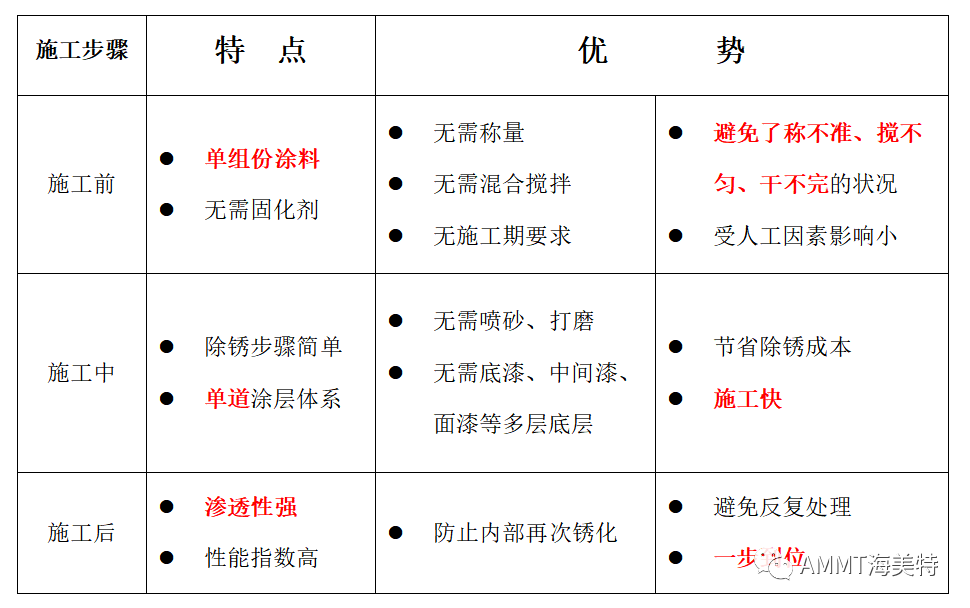在工業界,傳統防銹、除銹的工序在過去 50 年都是一些非常沒有效率的方式,這些工序、步驟僅僅只能達到有限的效果;其主要的做法就是讓涂料“粘”在表面上,而無法讓已經銹蝕的表面其銹蝕情況得到控制,因為銹蝕的表面有無數的銹蝕孔,深入到表面以下;孔中仍有水汽或甚至于有霉菌,會讓銹蝕持續進行。
