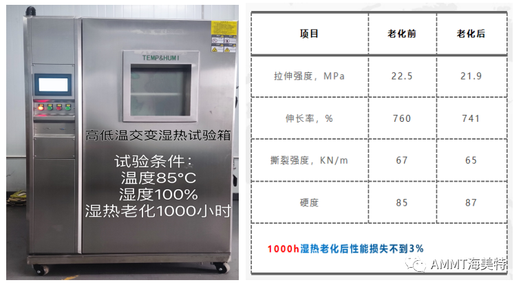 物理性能優異,拉伸強度>25Mpa、伸長率>1000%,撕裂強度>60KN/m,