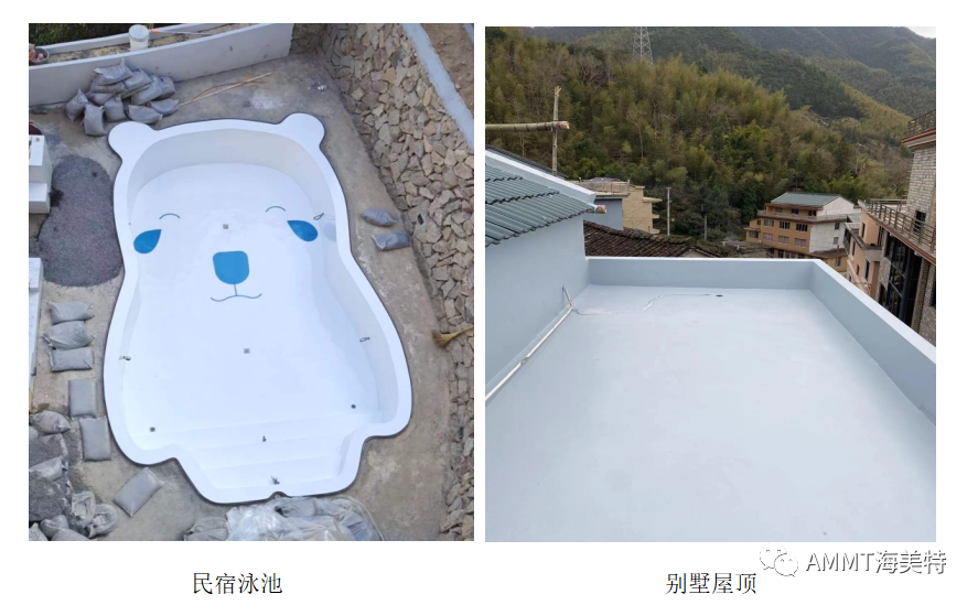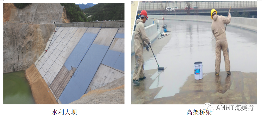 施工的簡單化、優異的材料性能、超長的使用壽命和良好的附著力,使其可附于金屬、混凝土、磚石、石棉水泥板、木材、瀝青等各種基材,可以應用于陽臺、衛生間、游泳池等領域的裝飾防水一體化工程,也可應用于大壩、橋梁、污水處理設施等混凝土表面的防護!