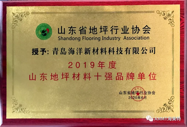 近日,山東省地坪行業協會一屆三次會員代表大會暨生態地坪環境及經營思路新模式高峰論壇在濰坊隆重舉行,青島海洋新材料有限公司(AMMT海美特)榮獲“山東地坪材料十強品牌單位”獎項,這是對公司產品質量的認可,對公司進一步推動綠色環保的地坪市場開發有著重要的意義。